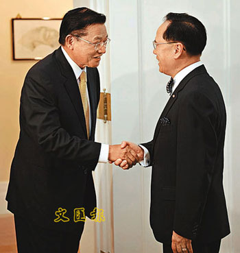 江丙坤今年7月訪問香港,曾與香港特首曾蔭權(quán)會面。(圖片來源:文匯報)