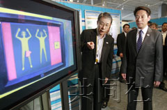 前原在到達(dá)機(jī)場后,還前往第一航站樓視察了將于5日起進(jìn)行試驗運行的新型“全身掃描”安檢設(shè)備,該設(shè)備因能透視乘客衣服而引發(fā)爭議。