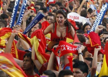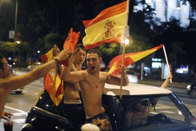 在首都馬德里,焰火聲、嗚嗚祖拉和汽車(chē)的喇叭聲交織在一起,奏響了勝利的序曲。而街道上、窗戶上和陽(yáng)臺(tái)上到處都能看到紅黃西班牙國(guó)旗在放肆的狂舞。