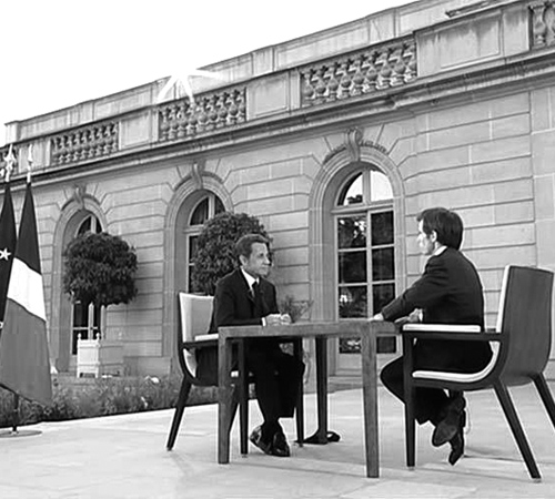 7月12日,法國(guó)國(guó)家電視二臺(tái)新聞主持人大衛(wèi)·布亞達(dá)斯就政治獻(xiàn)金問(wèn)題對(duì)法國(guó)總統(tǒng)薩科齊進(jìn)行了一次面對(duì)面、一對(duì)一的采訪(fǎng)。