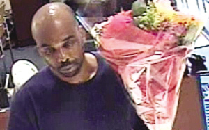 據(jù)美國媒體20日報道,警方稱,這名光頭男子15日上午手持一束艷麗的鮮花在曼哈頓區(qū)的一所銀行門口徘徊,看上去就像焦急等待女朋友的求愛者。之后他走進(jìn)銀行直奔營業(yè)窗口。監(jiān)控錄像記錄下他左手持花,右手從花束中掏出一張卡片遞給出納員,據(jù)說上面寫著:“交出你所有的100美元和50美元鈔票。別妄想當(dāng)英雄!边@名出納交出了440美元現(xiàn)金!磅r花劫匪”得手后就把鮮花扔在柜臺上,迅速逃離。