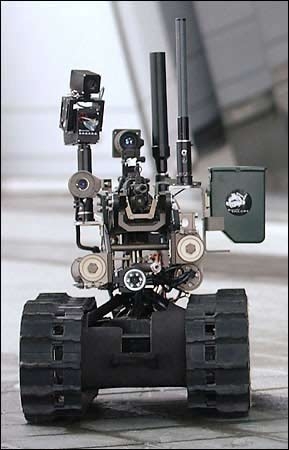 早在阿富汗戰(zhàn)爭之前,美軍就已經(jīng)將機器人用于搜救和安放炸彈。美軍于2000年就開始使用的“魔爪”機器人戰(zhàn)士,到了2004年美軍就有163個地面機器人戰(zhàn)士,2007年則快速增長到5000個,至少10款智能戰(zhàn)爭機器人在伊拉克和阿富汗“服役”。特別是,部署到阿富汗的智能機器人“赫爾墨斯”主要用于探穴鉆洞,它身上安裝有兩個照相機,能爬進(jìn)漆黑洞穴并向外發(fā)送圖片。美軍另外一種機器戰(zhàn)士“劍”在伊拉克戰(zhàn)場更是神通廣大,它能輕易通過任何阻礙,備彈200發(fā),裝備一挺經(jīng)改造的M249型機槍,射速高達(dá)1000發(fā)/分鐘,火力強度足以與一挺重機槍媲美。而“背包”機器人則能在巷戰(zhàn)環(huán)境中捕捉、分辨反美武裝狙擊手的細(xì)微動靜!靶釓棥睓C器人能靈敏地嗅出偽裝起來的爆炸物。名為“仿生蒼蠅”的機器人則可做一些復(fù)雜的手術(shù)……