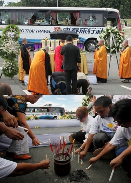 中新網(wǎng)8月25日電 綜合媒體報道,8月25日,是菲律賓所定的全國哀悼日,菲律賓人將與中國人一道,悼念在菲人質(zhì)劫持事件中遇難的中國香港游客。港府從24日至26日,連續(xù)三天為菲律賓人質(zhì)事件遇難者下半旗志哀。在菲律賓,民眾前往黎剎公園事發(fā)現(xiàn)場給遇難者獻花,氣氛凝重;遇難者家屬24日舉行路祭,場面催人淚下。