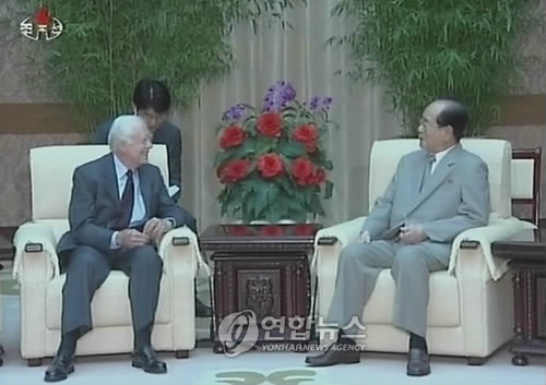 報道稱,金永南和卡特在溫馨的氛圍里進行了交談。六方會談朝鮮代表團長金桂冠等人出席了會晤。