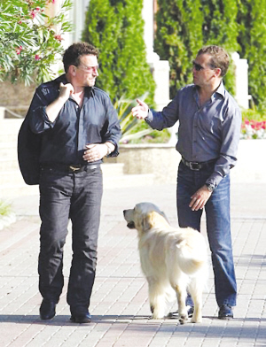 與普京的喜好不同,梅德韋杰夫似乎更加儒雅。他24日來到黑海之濱索契的一處海灘,約見愛爾蘭U2樂隊(duì)主唱波諾一同喝茶。U2樂隊(duì)本周將在俄羅斯首次舉行音樂會(huì)。