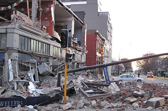 據(jù)新西蘭當(dāng)?shù)孛襟w報(bào)道,整個(gè)新西蘭南島都有震感,其中以克賴斯特徹奇最強(qiáng)。照片顯示,克賴斯特徹奇城內(nèi)到處是斷壁殘?jiān),部分建筑完全損毀。很多驚慌失措的民眾不敢回家,而選擇在外露宿。