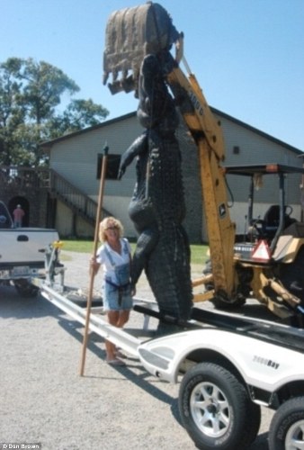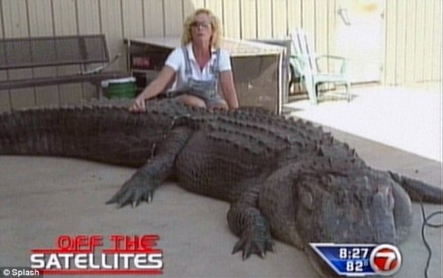 在南卡羅來納州摩爾特里湖中,48歲的瑪拉·克里斯蒂安與這條巨大無比的可怕生物爭斗了兩個(gè)小時(shí)。22毫米口徑的獵槍根本無法制服它,瑪拉就用鋒利的尖刀切斷了野獸的脊柱。最終,她終于可以在起吊機(jī)前細(xì)細(xì)打量這條令人難以置信的鱷魚。