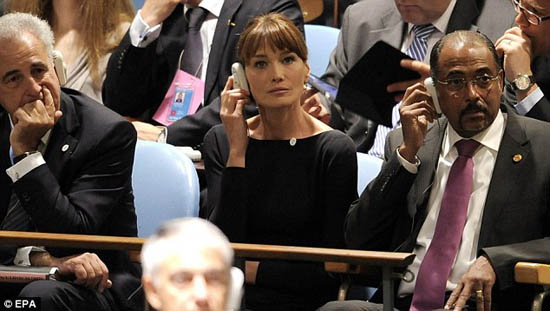 中新網(wǎng)9月21日電 據(jù)香港“星島日?qǐng)?bào)網(wǎng)”報(bào)道,法國(guó)第一夫人布魯尼因?yàn)榻趦杀拘聲臓?zhēng)議性內(nèi)容而成為傳媒焦點(diǎn),她20日陪同總統(tǒng)丈夫薩科齊出席聯(lián)合國(guó)千禧發(fā)展目標(biāo)峰會(huì)時(shí),以一襲柯德莉夏萍裝亮相,實(shí)時(shí)吸引記者鏡頭。但最引人入勝的是,她在聆聽丈夫發(fā)言時(shí),竟拿起傳譯耳機(jī),難道她聽不懂丈夫的語言?