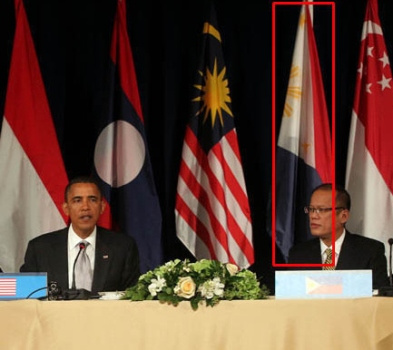 中新網(wǎng)9月27日電 據(jù)外電報(bào)道,24日,美國(guó)總統(tǒng)奧巴馬在紐約同東盟國(guó)家領(lǐng)導(dǎo)人舉行會(huì)晤,當(dāng)時(shí)放置在菲律賓總統(tǒng)阿基諾三世身后的菲律賓國(guó)旗被錯(cuò)誤地倒掛。菲律賓如果倒掛國(guó)旗,意味著進(jìn)入戰(zhàn)爭(zhēng)狀態(tài)。美國(guó)政府26日就此表示道歉。