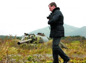 11月1日,俄總統(tǒng)梅德韋杰夫登上與日本存在爭(zhēng)議的南千島群島(日本稱北方四島)南端的國(guó)后島視察。這是俄羅斯和蘇聯(lián)歷史上首位前往南千島群島視察的國(guó)家元首。日本首相菅直人立即表示俄總統(tǒng)此行“非常令人遺憾”。俄羅斯外交部回應(yīng)稱,梅德韋杰夫“獨(dú)立確定在本國(guó)境內(nèi)出行的路線”。