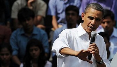 奧巴馬在訪問孟買的第2天,與孟買圣澤維爾學(xué)院(St. Xavier College)學(xué)生對(duì)話。他向?qū)W生們解釋,美國(guó)正積極與巴基斯坦合作,打擊伊斯蘭激進(jìn)份子,但進(jìn)展速度未如美國(guó)預(yù)期。