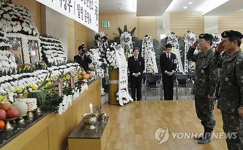 據(jù)報(bào)道,葬禮在韓國城南市一家軍隊(duì)醫(yī)院內(nèi)舉行,有數(shù)百人參加。其中包括政府高級官員、軍隊(duì)官員、政要、宗教領(lǐng)袖以及“反朝”積極分子。此外,一些對炮擊事件表示憤怒的韓國平民也到場悼念。