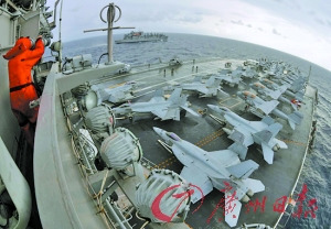 日本海上自衛(wèi)隊(duì)“宙斯盾”護(hù)衛(wèi)艦和剛剛參加完韓美聯(lián)合軍演的美國(guó)“喬治·華盛頓”號(hào)航空母艦將參加軍演。