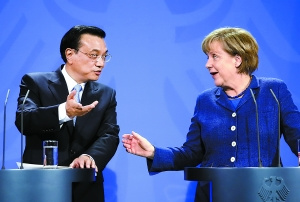 “中德關(guān)系不僅對我們雙邊,而且對中歐乃至于對世界都有重要意義。”李克強(qiáng)介紹說,剛才我與默克爾總理舉行了富有成果的會談,討論和規(guī)劃了未來一個時期中德合作的思路與重點(diǎn),就深化中德戰(zhàn)略伙伴關(guān)系達(dá)成重要共識。我們一致同意保持兩國總理年度會晤機(jī)制,加強(qiáng)各層次磋商交流,推進(jìn)經(jīng)貿(mào)、農(nóng)業(yè)、城鎮(zhèn)化、人文等領(lǐng)域合作,密切兩國人民的相互了解和友誼。這些舉措將有力推動兩國關(guān)系發(fā)展。