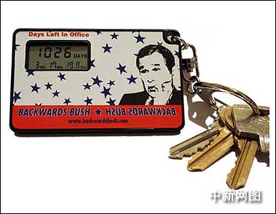 據(jù)美聯(lián)社報(bào)道,眼下,“布什任期倒計(jì)時(shí)產(chǎn)品”熱銷美國。名為“布什的最后一天”的數(shù)字鑰匙鏈,為2009年1月20日中午布什總統(tǒng)離任倒計(jì)時(shí);“最后的倒計(jì)時(shí)”辣醬上印有即將離職總統(tǒng)的卡通諷刺畫像;“布什餅干”狗糧的包裝上寫著“嘎吱嘎吱,他滾蛋了”。