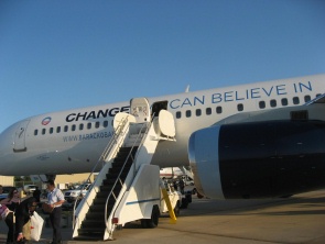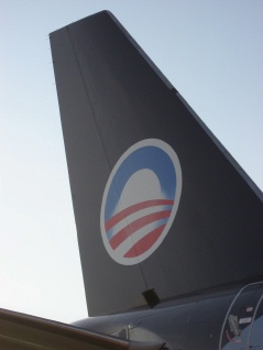奧巴馬競(jìng)選專(zhuān)機(jī)上的個(gè)人標(biāo)識(shí)。