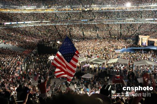 奧巴馬對在一連串愛國歌曲中揮舞著數(shù)千面小國旗,展現(xiàn)愛國情操的群眾說:“我要告訴你,約翰-麥凱恩先生,我們所有人都把國家擺在第一位!