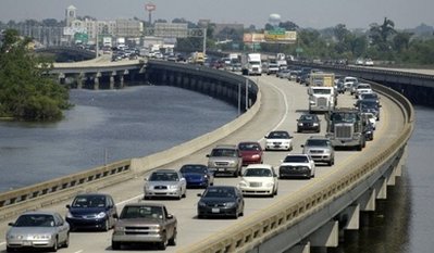 民眾駕車(chē)沿著州際公路撤離新奧爾良。
