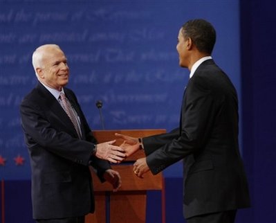 麥凱恩與奧巴馬在第一場(chǎng)辯論中