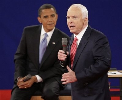 中新網(wǎng)10月8日電 綜合報(bào)道,美國(guó)當(dāng)?shù)貢r(shí)間10月7日晚上21點(diǎn)左右(北京時(shí)間10月8日早上9點(diǎn)左右),美國(guó)共和黨總統(tǒng)候選人麥凱恩和民主黨總統(tǒng)候選人奧巴馬在田納西州的貝爾蒙特大學(xué)開始辯論,這是兩人選舉議程的三場(chǎng)辯論中的第二場(chǎng)辯論。