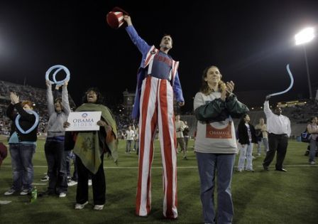 在克利夫蘭市,奧巴馬陣營安排了美國搖滾巨星史普林斯汀(Bruce Springsteen)到群眾大會演唱拉票。