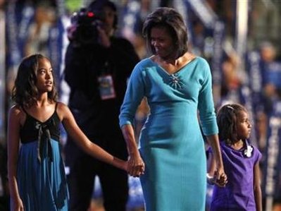 奧巴馬和夫人米歇爾上周前往白宮與布什和第一夫人勞拉見(jiàn)面時(shí),一對(duì)女兒并沒(méi)有同行。在勞拉的邀請(qǐng)下,7歲的薩莎和10歲的瑪利亞周二在母親和祖母陪同下,進(jìn)入白宮大開(kāi)眼界。