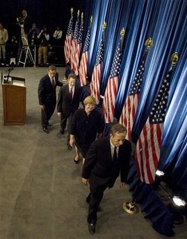 報道稱,在奧巴馬宣布經濟團隊的發(fā)布會上,很多記者發(fā)現(xiàn),無論自己的手舉多久,都不會被叫到,因為只有三家通訊社和三家報社的記者被允許提問。有細心的人統(tǒng)計了一下,只有美聯(lián)社和路透社在11月7日和11月24日的兩次發(fā)布會上都得到提問機會,《紐約時報》在第一次會議上得到機會發(fā)問,《華爾街日報》和《華盛頓郵報》則在第二次發(fā)布會上被允許發(fā)問。另外,按照白宮安排,美聯(lián)社在兩次發(fā)布會上都得以首先提問。