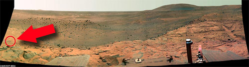 不久前,美國(guó)宇航局“勇氣號(hào)”火星探測(cè)器發(fā)回一系列火星表面的照片,有天文愛(ài)好者竟在其中一張照片中發(fā)現(xiàn)一個(gè)類(lèi)似女性外形的“火星人”。難道真的有“外星人”?