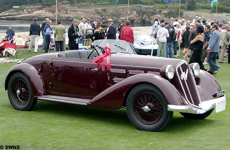 這輛舉世無(wú)雙的兩座跑車是阿爾法·羅密歐當(dāng)年作為禮物送給墨索里尼的,因?yàn)樵凇按笫挆l”時(shí)期,墨索里尼曾對(duì)轎車生產(chǎn)業(yè)做出過(guò)一定貢獻(xiàn)——出面干涉使生產(chǎn)商從瀕臨倒閉的境地“起死回生”。墨索里尼后來(lái)將這輛跑車的發(fā)動(dòng)機(jī)功率由原來(lái)的68馬力改進(jìn)到95馬力。