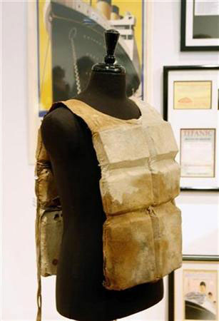 目前世界上僅存6件泰坦尼克號上的救生衣,2007年英國曾拍賣過一件類似的救生衣,當(dāng)時(shí)拍價(jià)為11萬9千美元。
