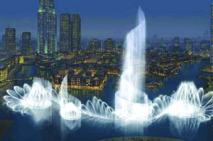 繼興建818米高的“迪拜塔”之后,阿聯(lián)酋地產(chǎn)巨頭艾瑪爾地產(chǎn)公司近日宣布,將在這座世界第一高樓附近打造一座世界最大噴泉。該噴泉高150米,長275米,相當于兩個足球場長,可以變幻1000種造型,耗資高達2.18億美元,將于2009年投入使用。一旦竣工,它將成為迪拜市又一地標性景觀,預計每年將吸引1000萬名國際游客。目前,艾瑪爾地產(chǎn)公司懸賞27225美元,為這座噴泉征集“靚名”。