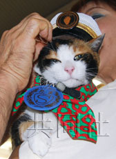中新網(wǎng)7月22日電 共同社報道,日本和歌山電鐵貴志川線貴志車站的超級站長——9歲的雌貓“阿玉”20日領(lǐng)取了她的“獎金”:一頂夏季制服帽和一張專用床。
