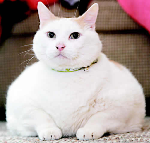 庇護中心義工賴特說,它可能被喂了一桌子的食物或患了甲狀腺毛病,否則體形不會如此膨脹。由于貓塊頭實在太大,義工正為它設(shè)計低熱量減肥餐,并以多種玩具助它做多些運動。