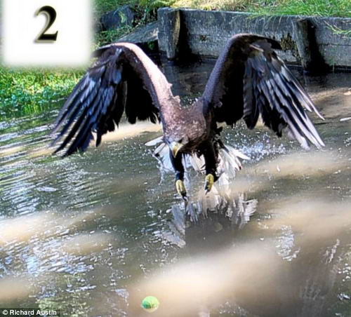 據(jù)英國(guó)《每日郵報(bào)》今天報(bào)道,一只四歲的白尾海雕“埃維”愛上了叼網(wǎng)球的游戲,每當(dāng)埃維的主人將黃色的網(wǎng)球扔出去后,“她”總是會(huì)將網(wǎng)球叼回來。