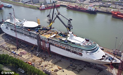 中新網(wǎng)8月26日電 綜合報(bào)道,把游輪“一刀兩斷”,然后再塞進(jìn)去一節(jié)船艙,繼而拼裝成一艘“擴(kuò)大版”的客輪,這樣的“大刀闊斧”可不是幻覺(jué),這艘長(zhǎng)916英尺游輪的主人確實(shí)將船鋸開,要將其再擴(kuò)展73英尺。