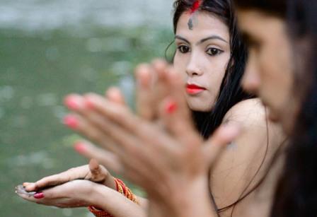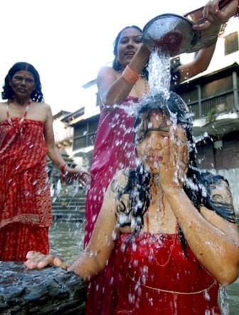 中新網(wǎng)9月5日電 綜合報道,9月4日是印度教傳統(tǒng)節(jié)日提吉節(jié)的最后一天。在尼泊爾加德滿都,印度教女子在河中沐浴,已婚的印度教婦女為自己的丈夫祈禱;未婚的少女們,則祈愿自己將來能找到一個英俊如意的丈夫。