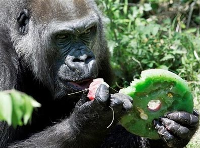 今年5月8日,達(dá)拉斯動(dòng)物園的工作人員還為詹妮慶祝了55歲生日,工作人員將一塊4層的冰凍水果蛋糕和香蕉葉包裹的甜點(diǎn)作為生日禮物送給這位“老壽星”。