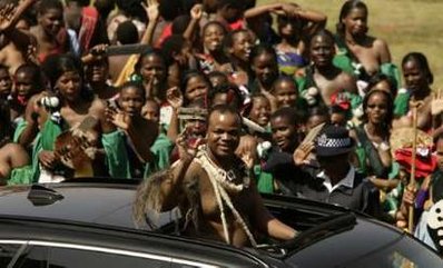 斯威士蘭國王在慶祝其生日的大會上。萬名佳麗相伴左右。