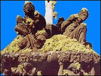 數(shù)千升當(dāng)?shù)禺a(chǎn)的白葡萄酒被輸送到鎮(zhèn)中央廣場的一座噴泉。