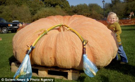 日前,在南安普敦附近的奈特利舉行的一年一度的南瓜節(jié)上,伊恩·帕頓和斯圖亞特·帕頓兄弟種植的大南瓜成為南瓜節(jié)上的焦點。經過特殊的絞盤裝置稱后發(fā)現,這個大南瓜竟有661公斤,需要鏟車幫忙才能提起來,刷新了歐洲的南瓜紀錄。