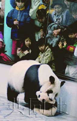 資料照片:2000年12月,“梅梅”關(guān)愛(ài)地抱起自己的孩子“良濱”。