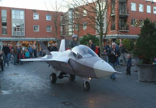 這架仿造的戰(zhàn)斗機機身長7米、寬4米,設計者是根據(jù)F-35聯(lián)合攻擊戰(zhàn)斗機以1:2的尺寸制作而成的,所有花費共計4000英鎊。來自荷蘭的亞瑟是這架戰(zhàn)斗機的設計者,他全部的制作材料是鋼材、木頭、硬泡沫、玻璃纖維以及大量的環(huán)氧裝填物。亞瑟在戰(zhàn)斗機的座艙內(nèi)安裝了照相機、監(jiān)控器;為適應晚間飛行的需要,還裝備了導航燈、探照燈、內(nèi)部照明設備等。戰(zhàn)斗機飛行的最快速度為8公里/小時。