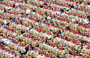 20日下午,數(shù)千人齊聚韓國首爾廣場,腌制出143噸韓國泡菜———堪稱世界上最大份的泡菜。這是一項慈善活動,泡菜將被分發(fā)給首爾的窮困家庭。