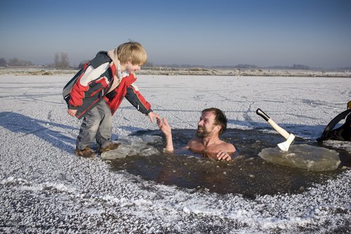霍夫說(shuō):“我當(dāng)時(shí)和某人在公園散步,看到了冰。我突然冒出個(gè)想法:要是站到冰中會(huì)怎樣呢?我非常想試一下。于是,我脫掉衣服,在里面站立了30秒。出來(lái)后,我有一股強(qiáng)烈的愉悅感。從那以后,我每天都這樣做!