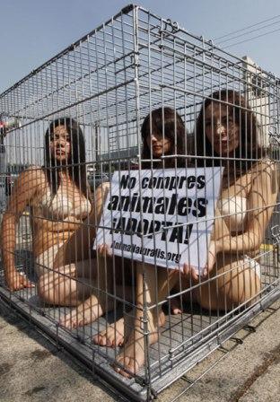 中新網(wǎng)1月4日電 綜合報(bào)道,1月3日,墨西哥城3名動(dòng)物權(quán)益組織成員坐在一個(gè)籠子中,對(duì)買(mǎi)賣(mài)寵物的行為表示抗議。他們希望以這種形式喚起人們的注意,呼吁人們不要販賣(mài)寵物。
