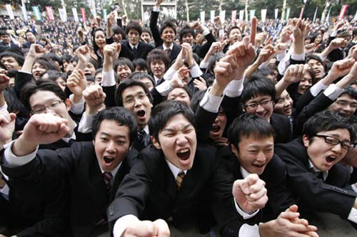 2月5日,在日本東京舉行的一個(gè)求職者集會(huì)上,大學(xué)生們振臂高呼,互相鼓勵(lì)并為自己加油。
