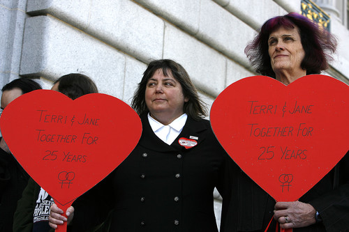 中新網(wǎng)2月13日電 據(jù)英國媒體報道,美國舊金山12日拉開一年一度的“自由結(jié)婚周”活動的序幕,數(shù)百對同性戀夫婦聚集在市政廳抗議,要求發(fā)放結(jié)婚證。