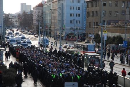 大約400名觀看足球聯(lián)賽巴尼克隊(duì)與布拉格斯拉維亞隊(duì)比賽的巴尼克隊(duì)球迷當(dāng)天傍晚乘坐火車從386公里以外的俄斯特拉發(fā)市到達(dá)首都布拉格后,早已恭候在火車站外的大隊(duì)防暴警察押送他們步行3公里直接去斯拉維亞體育場(chǎng)。比賽一結(jié)束又立即重新把他們押送回火車上,讓他們馬上回家,禁止他們?nèi)ナ锥际兄行聂[事。當(dāng)晚比賽巴尼克隊(duì)以0:1負(fù)于斯拉維亞隊(duì),其間沒(méi)有發(fā)生大規(guī)模球迷騷亂,巴尼克隊(duì)球迷深夜2時(shí)回到家鄉(xiāng)。