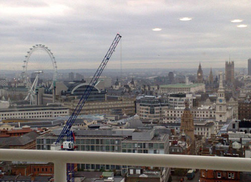今年40歲的德里克-伯登(Derek Burden)在倫敦西區(qū)的科芬園的16層高樓處發(fā)現(xiàn)令人驚異的UFO景象,拍攝時間是早上8點30分。但是伯登只用手機拍攝了一張照片,這件事發(fā)生在幾天前,當時他的妻子莎拉注意到厚云層的太空中隱約出現(xiàn)了幾個特殊形狀的飛行物,伯登說:“當時我正在等即將送來的一些材料,我便忙中偷閑去陽臺喝杯茶,依據(jù)妻子所描述的不明飛行物,我在16層樓拍攝起來十分方便。”他還指出,這4個UFO釋放的光線并不是任何典型的光線折射,并證實在拍攝時身旁并沒有任何特定光源進行偽造拍攝。