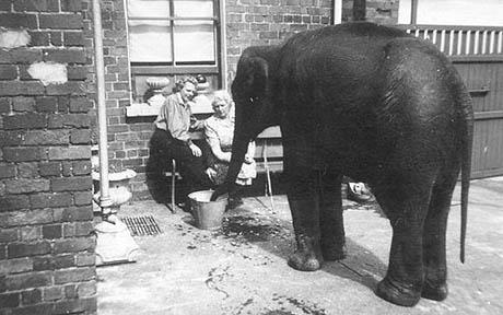 二戰(zhàn)中,貝爾法斯特當(dāng)?shù)鼐鞛榱朔乐罐Z炸造成動物逃跑傷人,共槍殺了23只動物,包括一只老虎、一只黑熊、一只猞猁、一只鬣狗、兩只北極熊和六只狼。而這只大象幸運的被一位婦女發(fā)現(xiàn),并被藏于婦女家中得以逃生。
